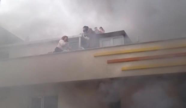 Aşağıya inemeyen bina sakinleri can havliyle çatıya çıktı. Aralarında çocukların da bulunduğu 12 kişi dumandan etkilenmemek için çatıda güvenli bir yere geçti.