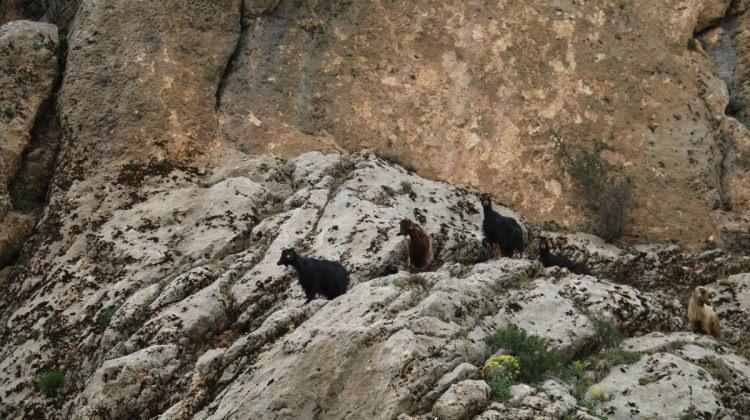 Alınan bilgiye göre, ilçeye bağlı Dumlu köyünde küçükbaş hayvanlarını otlatan çoban Mustafa Kaya, birkaç keçinin çıktıkları yüksek bir bölgeden inemediğini gördü.