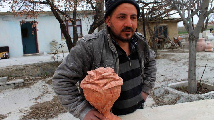 Afyonkarahisar'ın İscehisar ilçesinde mermer el sanatları ile uğraşan Hasan Usta, "gül"ü mermer taşına işledi.