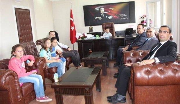 Kaymakam Kılınçoğlu ziyarete katılan çocuklara makamını devretti.