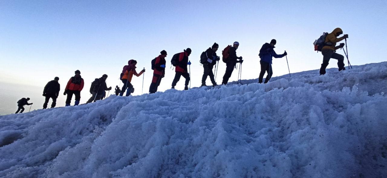 Açıklamasının devamında zirvedeki buzulların eridiğine dikkat çeken Kulüp Başkanı Demez, devamında: “Buzullar eriyor. Dikkat! Küresel ısınmadan dolayı Ağrı Dağı buzullarının büyük bir kısmının eridiğini, güney tarafta bulunan buzullarda bile buzul çatlaklarının olduğunu gördük. Havanın güzel olması nedeniyle ve zirve de olan buzulların erimesiyle Ermenistan-İran tarafındaki zirveye de çıkma fırsatımız oldu. Küresel ısınma sonumuz olacak. Hep beraber doğaya sahip çıkmazsak doğa yok olacak. Yok olan doğa sonumuz olacak.” İfadelerini kullandı.