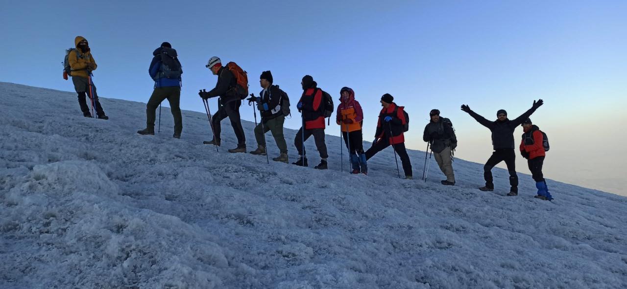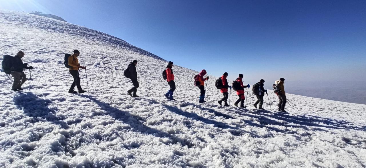 Gerçekleştirdikleri zirve tırmanışı hakkında açıklama yapan Vadi Doğa Sporları Kulübü Başkanı Ömer Demez, zirvedeki buzulların eridiğine dikkat çekerek: “Vadi Doğa Sporları Kulübü olarak Ağrı Dağı tırmanışı olarak belirledik. Ekibimiz başarılı bir performans sergileyerek 4 gün hedeflemiş olduğumuz zirve tırmanışını 3 günde bitirmiş oldu. Van'dan hareket ederek Doğubeyazıt Çevirme köyüne vardık. Çevirme Köyünden 3 bin 200 kampına aynı gün içinde varmış olduk. Kampın kurulması akşam yemeği ve yatıştan sonra 28 Ağustos Pazar günü 4 bin kampına hareket ettik. Ekibimiz saat 02.00'de zirve tırmanışı için hareket etti ve 4 saat 5 dakika yani saat 06.05'te zirveye vararak başarılı bir tırmanış gerçekleştirmiş oldu. 11 kişinin katıldığı tırmanış bütün ekibin zirve yapmasıyla tamamlandı. Zirve mutluluğumuzu hep beraber yaşadık. Ekibimizi canı gönülden kutluyoruz. Zirvenin sıcak olması nedeniyle yaklaşık 2 saat zirvenin güney yamacında zaman geçirdik. Kahvaltı ve çay molasından sonra ölümsüz fotoğraflar ile görüntüler çektik. Moladan sonra ekibimiz saat 11:00 itibariyle 4 bin 200 kampına dönüş sağladı. Dinlenme ve yemek molasından sonra 3 bin 200 kampına oradan da Çevirme köyüne yürüyerek inişimizi gerçekleştirdik” dedi.
