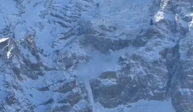 O sırada Yeni Doğan köyü çevresinde yürüyüş yapan dağcılar, çığın dağ yamacından büyük bir gürültüyle koptuğu anları kayda aldı.