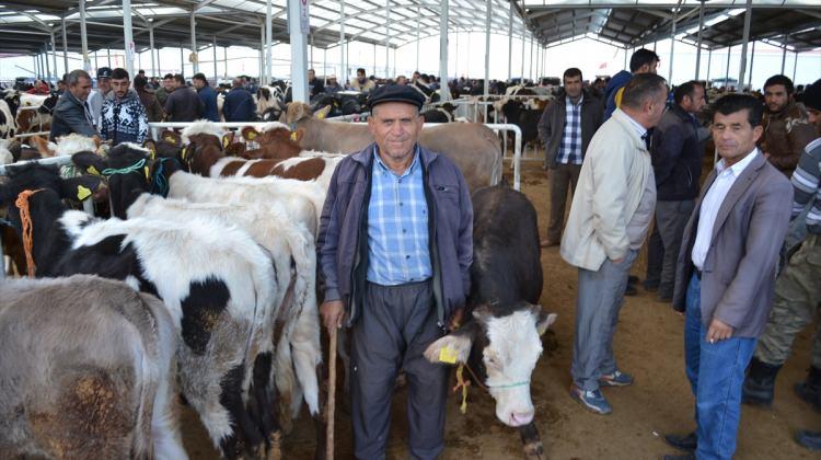 Ticaret Borsası Canlı Hayvan Pazarı'nda bir araya gelen besiciler, ithal ete tepki göstererek, "İthal ete hayır" diye slogan attı.