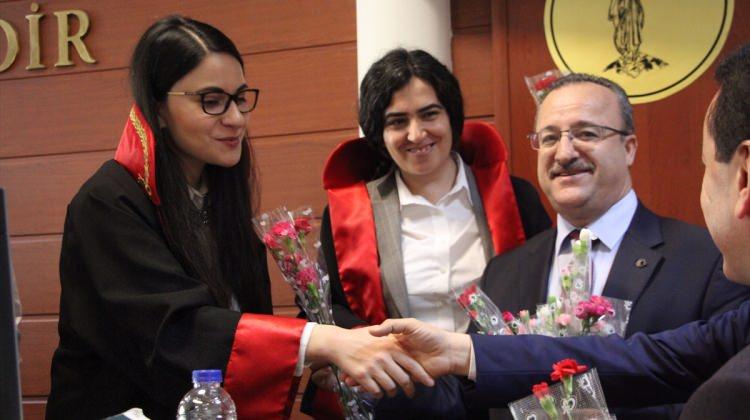 Solmaz, Adliye Komisyon Başkanı Orhan Özdemir, Başsavcı Vekili Gürkan Kütük, Hayrettin Tızlak ve HSYK Arif Sami Kaya çalışan kadınlara çiçek verdi.