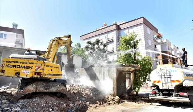 Muratpaşa Belediyesi, Kızıltoprak Mahallesi'nde madde bağımlılarının kullandığı belirlenen 10 metruk binanın yıkımını gerçekleştirdi.