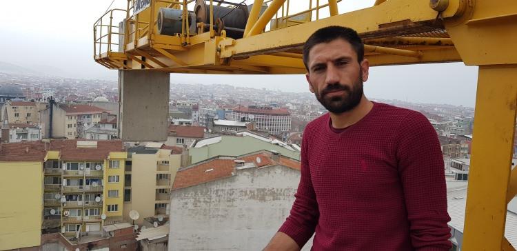5 yıldır kule vinç operatörlüğü yapan Ramazan Demir, mesleğinin zorluklarını anlattı. Balıkesir'de bir inşaat firmasında operatörlük yapan Demir, işinin çok zor olduğunu ve yapacağı ufacık bir hatanın başkalarının ölümüne yol açabileceğini söyledi. Bu işte önceliğin aşağıda çalışan işçilerin güvenliğinin sağlanması olduğuna dikkat çeken Ramazan Demir, "Bu iş dikkat ve tecrübe ister. En ufak bir hata bir insanın aşağıda ölmesine mal olur. Önce aşağıda çalışanların güvenliğini alman lazım. Çalıştığın her an dikkatli olman lazım. Vincin içindeyken sürekli telsiz anonslarını takip etmemiz gerekiyor. Bu işi zaten her insan yapamıyor. Yapanların da belgesi oluyor. Bunun eğitimlerini görüyoruz. Kursuna gidiyoruz ve belgeyi alıyoruz. Sertifikayı aldıktan sonra bilinen yerlere başvuru yapıyoruz ve şartlar uyunca da iş başı yapıyoruz" dedi.