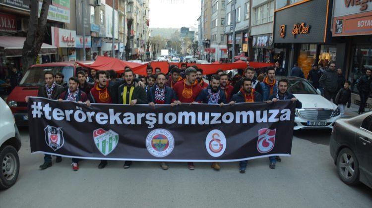 Bilecik'te, Beşiktaş, Fenerbahçe, Galatasaray, Trabzonspor ve Bursaspor taraftarı teröre tepki amacıyla yürüyüş düzenledi.