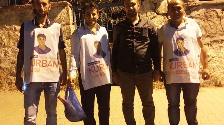 Bitlis'de AK Parti Gençlik Kolları üyeleri, Yasin Börü ve arkadaşlarının fotoğraflarının yer aldığı önlükleri giyerek yardıma muhtaç ailelere kurban eti dağıttı.