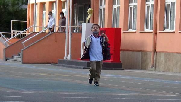İlkokul birinci sınıfa gidecek olan oğlu Efe Birgül'ü getiren annesi Arife Birgül ise, "Bir yandan sevinçliyim, bir yandan da üzüntülüyüm hastalık nedeniyle. O yüzden korkuyorum. Tedbirler alındı, yine de korkuyorum. Çocuk bilmiyor, elini oraya buraya vuruyor, o yüzden tedirginim" diye konuştu.