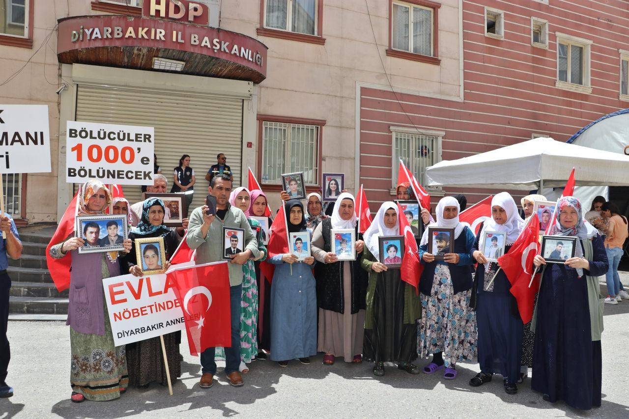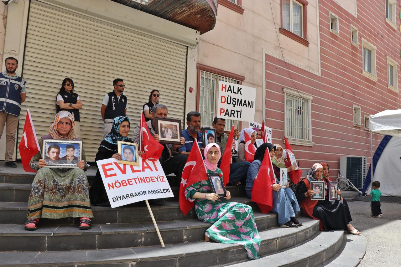Kentte çocukları terör örgütü PKK tarafından dağa kaçırılan aileler, 3 Eylül 2019'da HDP İl Başkanlığı binası önünde oturma eylemi başlattı. 301 ailenin dönüşümlü olarak 1005 gündür sürdürdüğü eylemde, şu ana kadar 35 aile çocuğuna kavuştu. Aileler, bugün de hava sıcaklığının 37 dereceyi gördüğü kentte, güneşin altında evlat nöbetini sürdürmeye devam etti.