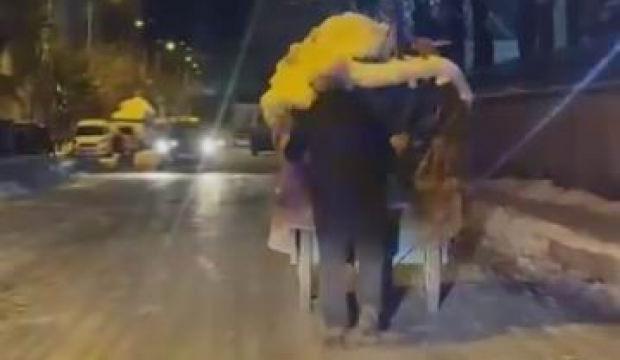 Edinilen bilgiye göre, bir pazarda esnaflık yapan vatandaş, akşam saatlerinde kalan ürünlerini el arabasına toplayıp evin yolunu tuttu.