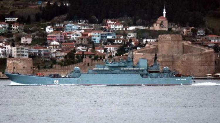 ÇANAKKALE Boğazı'ndan geçen Rus Donanması'na ait 158 borda numaralı 'Caesar Kunikov' isimli savaş gemisi, Akdeniz'e gitmek üzere yol aldı.