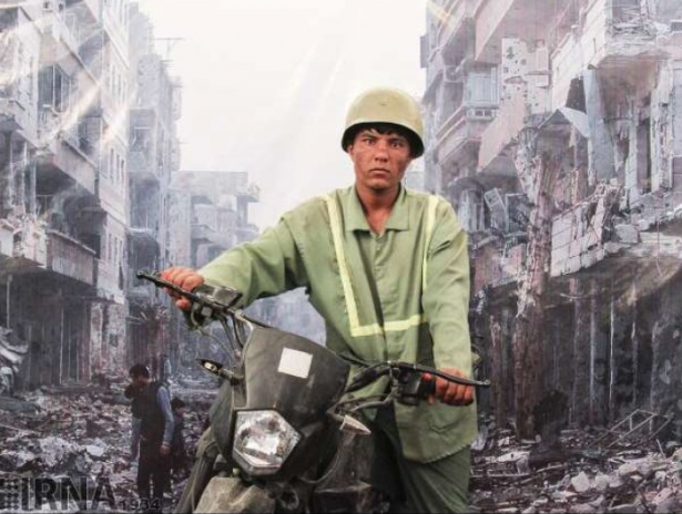 Fotoğrafçı David Qhrdar, Kitap Fuarını ziyaret eden İranlıları Suriye'den bir kare önünde motorsiklet üzerinde askeri techizatlarla farklı şekillerde fotoğraflarını çekti. Fotoğraflar İran'ın Devlet Haber Ajansı İRNA'da yayınlandı.