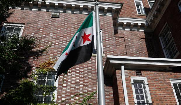 Suriye Arap Cumhuriyeti bayrağı, ABD'nin başkenti Washington'da bulunan Suriye Büyükelçiliği binasında göndere çekildi.