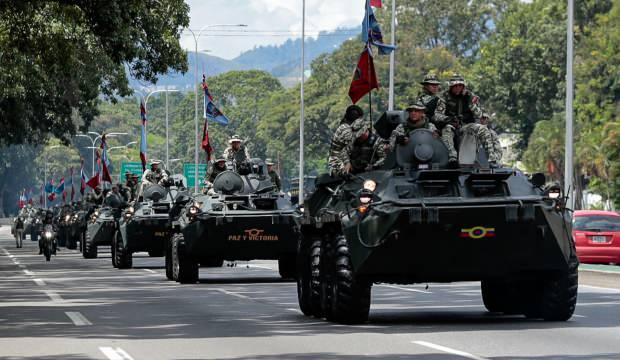 Venezuela Bolivarcı Ulusal Silahlı Kuvvetlerine (FANB) bağlı çok sayıda tank ve zırhlı araçla ordu mensupları, başkent Caracas’ta düzenlenen konvoyla halka selam verdi.
