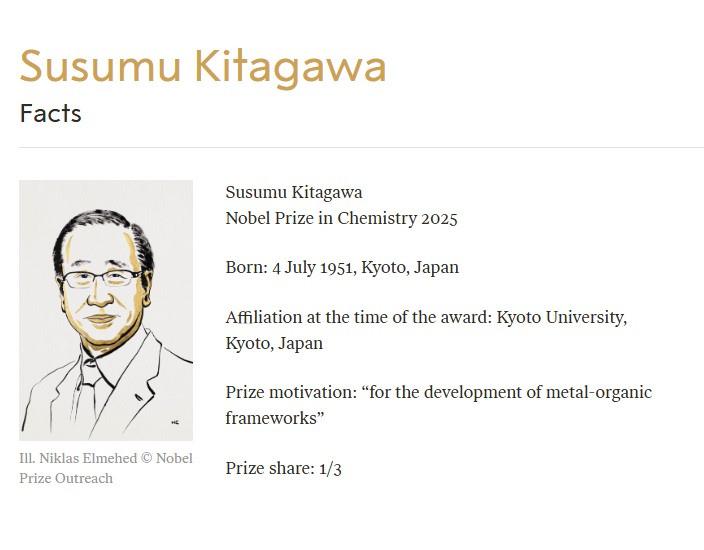 Son dakika... Japonya Kyoto Üniversitesi'nden Kitagawa, Avustralya Melbourne Üniversitesi'nden Robson ve Kaliforniya Üniversitesi Berkeley'den Yaghi metal-organik yapılar üzerine yaptıkları çalışmalarla kimya alanında Nobel Ödülü kazandı.