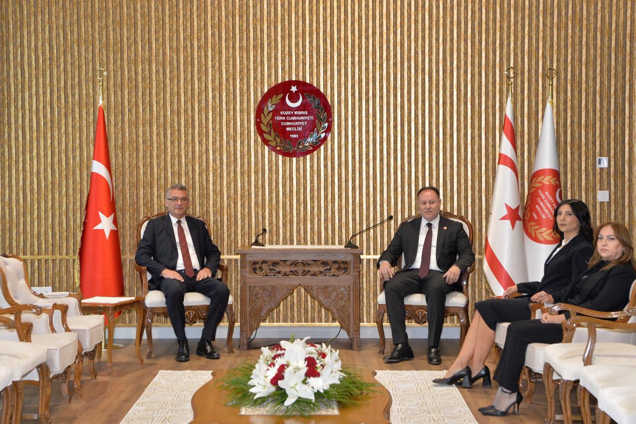 Yemin töreni için Meclis’e gelen Erhürman'ı Meclis Başkanı Ziya Öztürkler karşıladı.