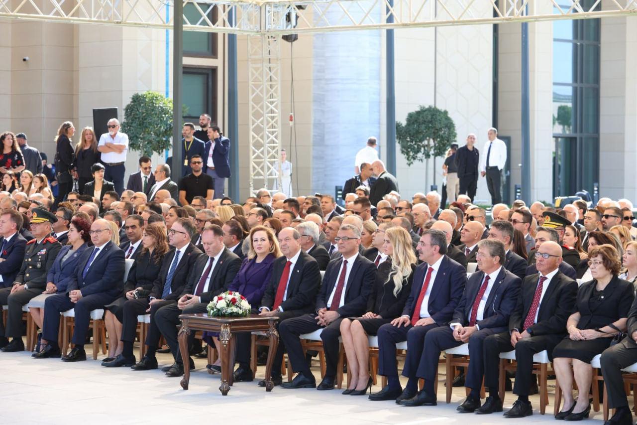 Meclis'teki törene, Cumhurbaşkanı Yardımcısı Cevdet Yılmaz, Yüksek Mahkeme Başkanı Bertan Özerdağ, 2. Cumhurbaşkanı Mehmet Ali Talat, Türkiye'nin Lefkoşa Büyükelçisi Ali Murat Başçeri, milletvekilleri, bürokratlar, eski meclis başkanları, başbakanlar, bakanlar ve siyasiler ile Tufan Erhürman'ın eşi Nilden Bektaş Erhürman katıldı. Tören için Meclis bahçesindeki bayrağa Cumhurbaşkanlığı forsu asıldı.