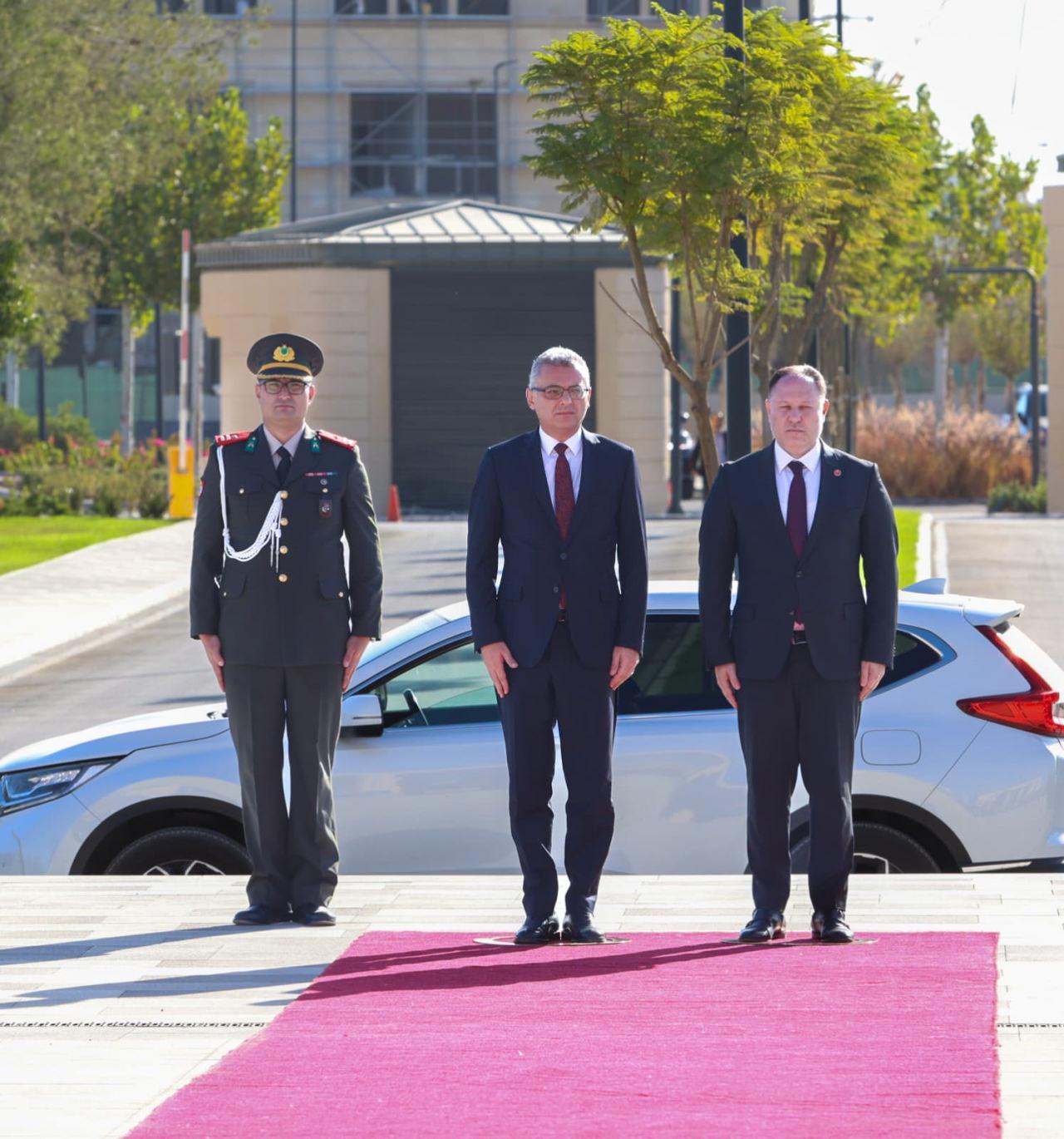 Meclis'e gelişinde KKTC Cumhuriyet Meclisi Başkanı Ziya Öztürkler tarafından karşılanan KKTC'nin 6. Cumhurbaşkanı Erhürman, askeri birliği selamladı.