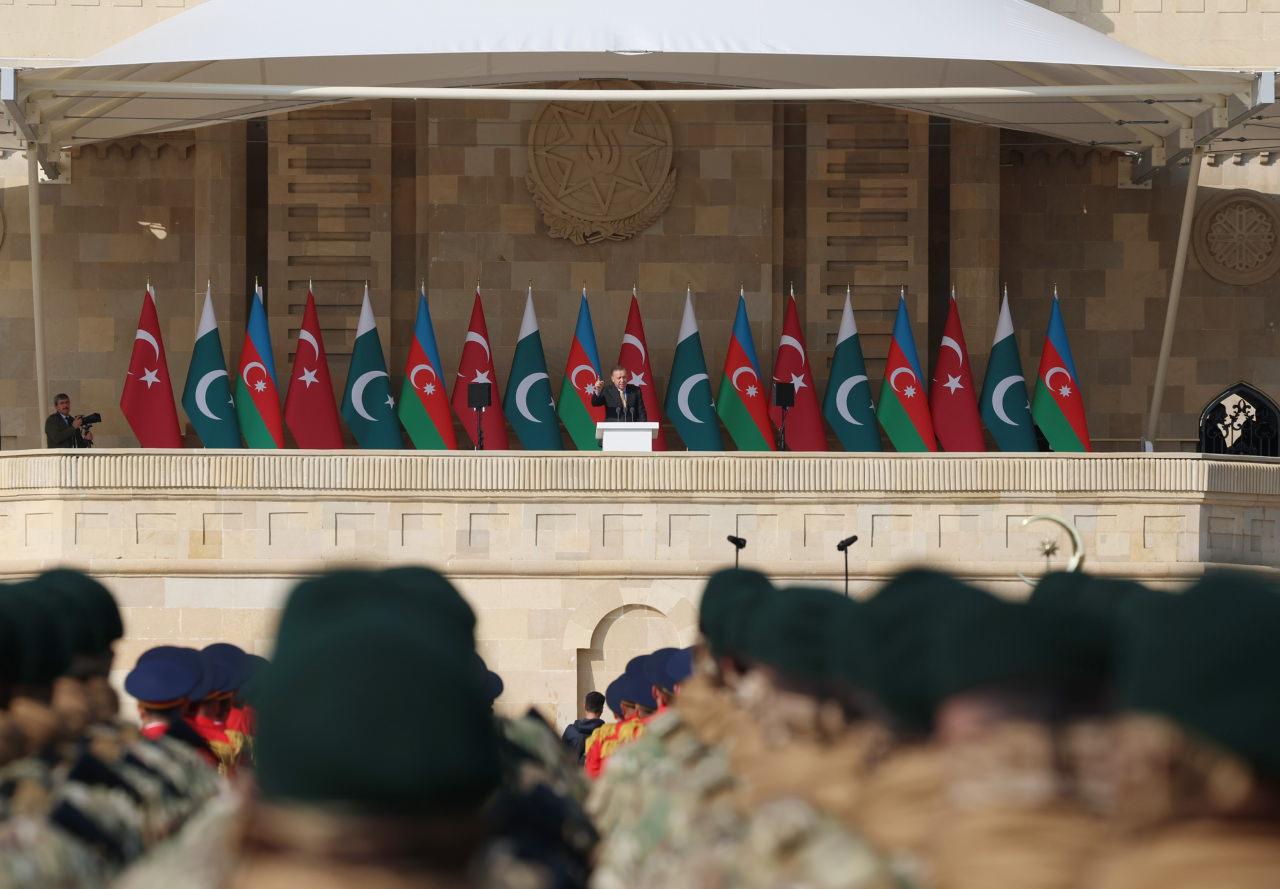 - Erdoğan, Aliyev ve Şahbaz'ın konuşmalarından sonra Türk askerlerinin de yer aldığı geçit töreni gerçekleştirildi.