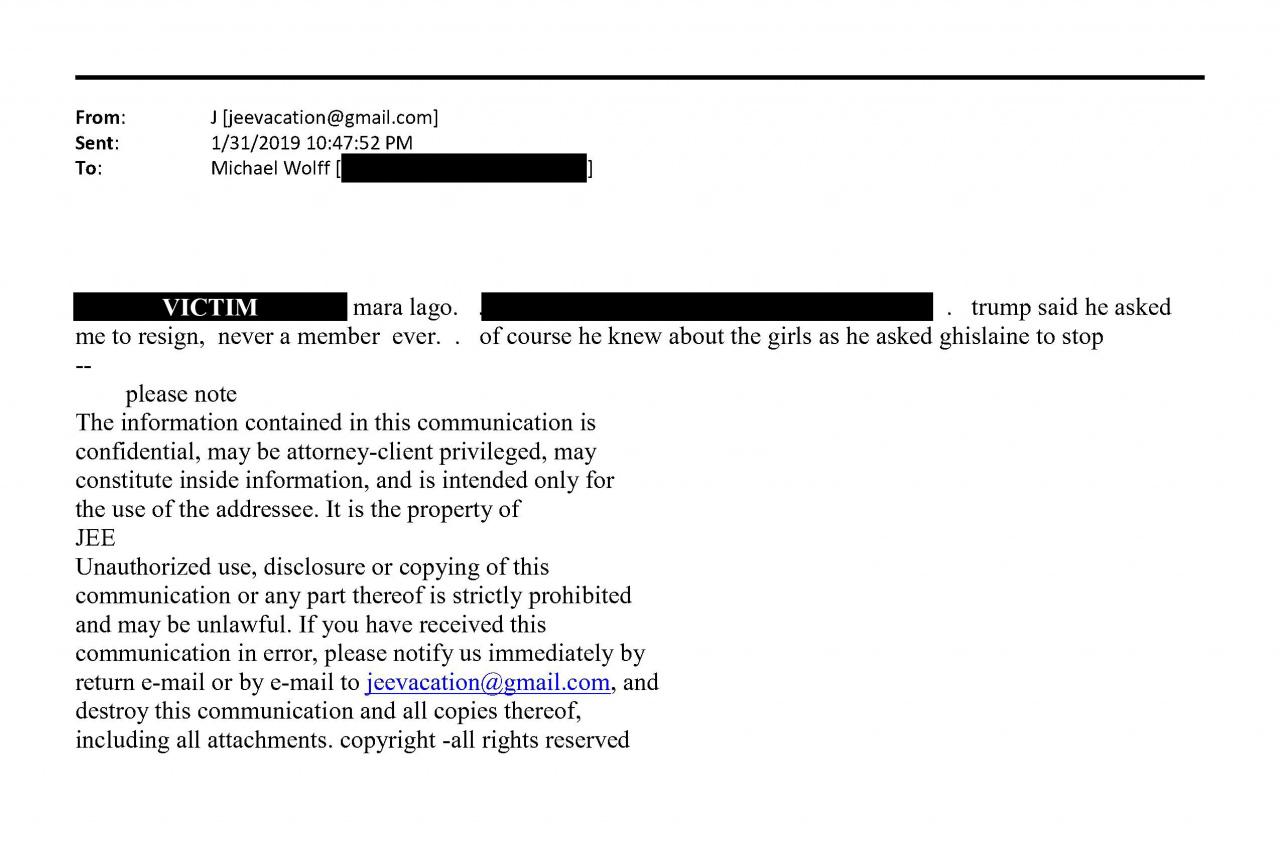 Jeffrey Epstein'ın 2019 yılında sevgilisi Ghislaine Maxwell ve gazeteci Micheal Wolff'a gönderdiği e-postalar bir anda yeniden ortaya saçıldı. Söz konusu mailler, 12 Kasım tarihinde United States House of Representatives'ın denetim komitesinin demokrat üyeleri aracılığıyla kamuoyuna servis edildi. İçerikte Trump pedofili ile suçlanıyordu. Ardından dünya medyası Trump'ı hedefe koyan haberler girdi haliyle.
