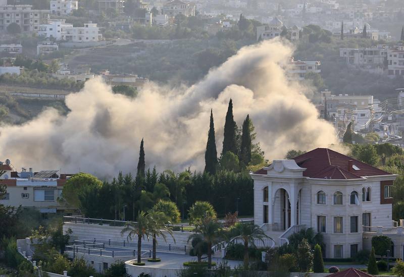 Sosyal medyaya yansıyan görüntülerde, İsrail'in hava saldırılarında büyük yıkıma uğrayan Beyrut'un güney banliyösü Dahiye'de vurulan bir binadan dumanların yükseldiği görüldü.