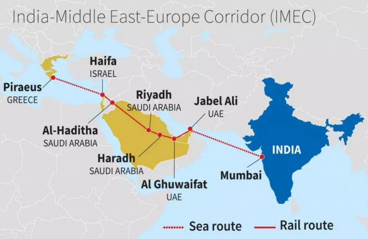 Hindistan'ın ev sahipliğinde 18'incisi "Tek Dünya, Tek Aile, Tek Gelecek" ana temasıyla 2023'te düzenlenen G20 Liderler Zirvesi çerçevesinde, Hindistan'ı Orta Doğu ve Avrupa'ya bağlayacak çok uluslu bir demir yolu ve denizcilik projesi olan "Hindistan-Orta Doğu-Avrupa Ekonomik Koridoru (IMEC)" tanıtılmıştı.