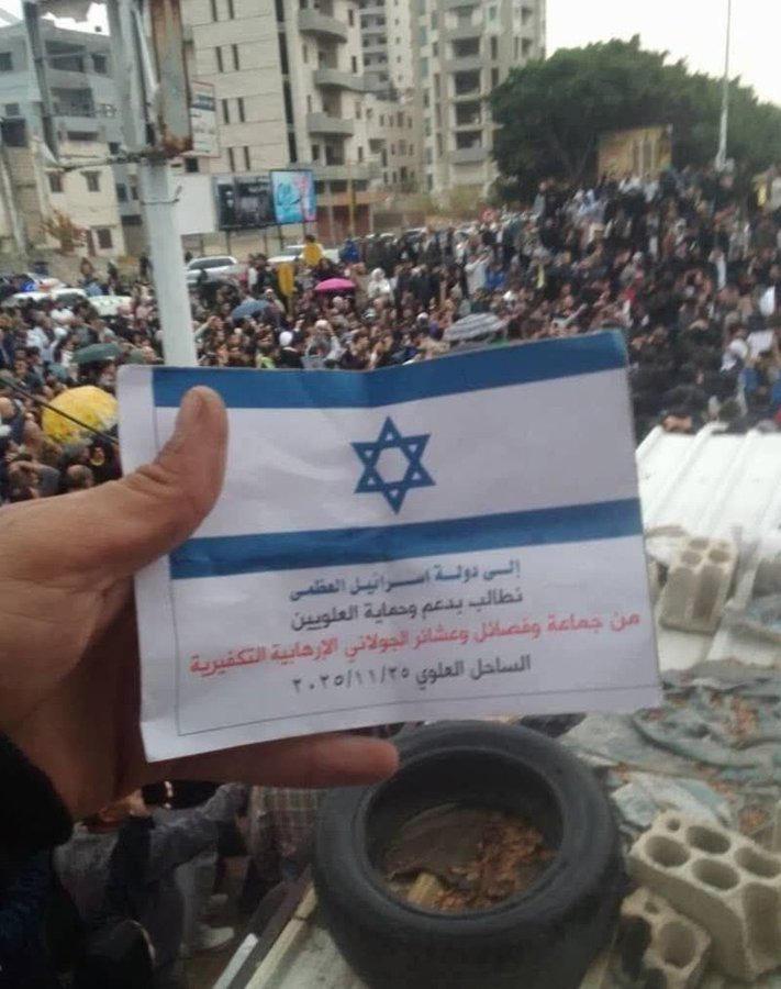 "Büyük İsrail Devleti'ne. Alevilerin, Colani'nin (Ahmed Şara) terörist tekfirci gruplarından, hiziplerinden ve aşiretlerinden korunmasını ve desteklenmesini talep ediyoruz."