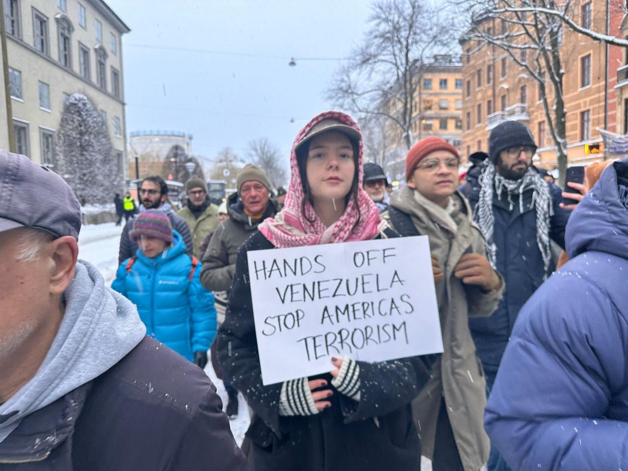 ABD'nin Venezuela'ya gerçekleştirdiği saldırı sonrası İsveç'te protesto düzenlendi.