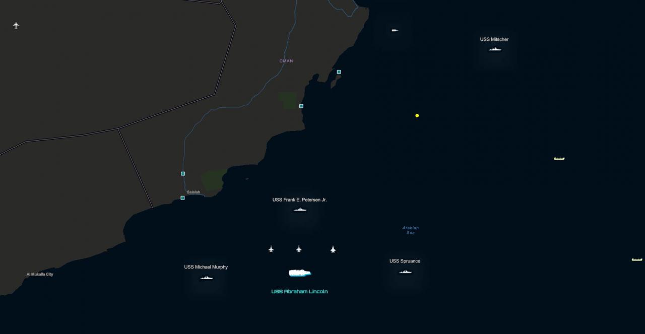 Bu çerçevede, USS Abraham Lincoln (CVN-72) uçak gemisinin AIS sistemi devre dışı bırakılmış halde Umman kıyıları açıklarında faaliyet yürüttüğü bildirildi.