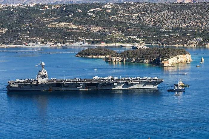 - USS Gerald R. Ford adlı dünyanın en büyük uçak gemisi, Yunanistan'ın Girit adası yakınlarında görüntülendi.