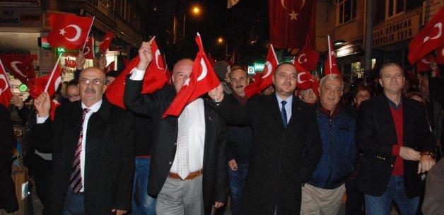 Ellerinde Türk bayrakları taşıyan Uzunköprülü vatandaşların Adalet Meydanı'nda başladıkları yürüyüş Cumhuriyet Meydanı'nda son buldu.