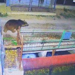 GÜNCEL1 GÜN ÖNCETrabzon Of'ta kovanlardaki balı yiyen ayı kameraya yakalandıTrabzon'un Of ilçesinde bir evin 2. katına tırmanarak ulaştığı balkonda bulunan arı kovanlarındaki balı ilk gün bitiremeyen ayı, 2. günde gelip kaldığı yerden balları yemeye devam etti. Yaşananlar güvenlik kameralarına yansıdı. -