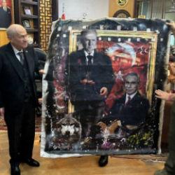 GÜNCEL2 AY ÖNCEMHP Genel Başkanı Bahçeli'den Cumhurbaşkanı Erdoğan'a anlamlı hediyeMHP Genel Başkanı Devlet Bahçeli, Cumhuriyetin 102. kuruluş yıl dönümü dolayısıyla Cumhurbaşkanı Recep Tayyip Erdoğan'a, üzerinde resmi, imzası, Türk bayrağı ile Cumhurbaşkanlığı forsunun yer aldığı tablo hediye etti. -
