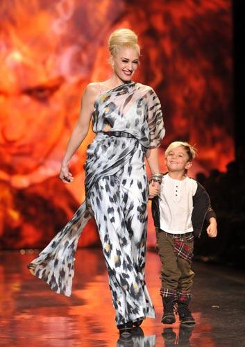 Stefani, gösterinin sonunda oğluyla podyuma çıktı.