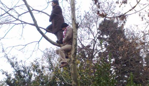 Mahşeri kalabalıkta namaz için yer bulamayanlar ağaçta namaz kıldı.