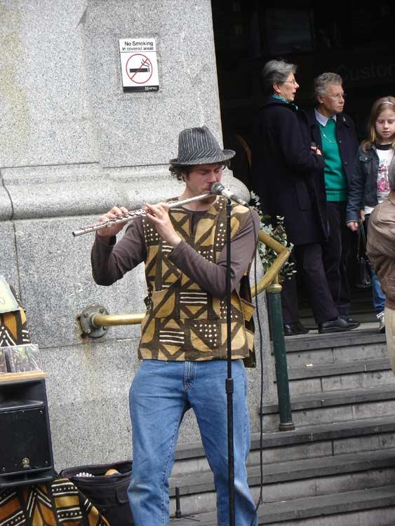 Sokak müzisyeni, sanatını icra ediyor. Para atmıyorum, zira benden muhakkak ki daha paralı arkadaş.