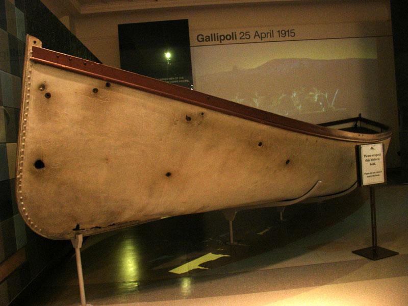 Bu delik deşik edilen kayığın başında yazan Gallipoli, Gelibolu demek. Burada insan kendini düşman birliklerinin casusu gibi hissediyor kendini.