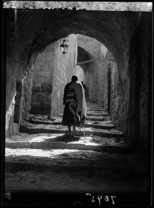 Eric ve Edith Matson Fotoğraf Koleksiyonunundan alınan bu fotoğrafda 1930 yıllarında Kudüs'te Eski Şehirde yürüyen bir Arap görünüyor...