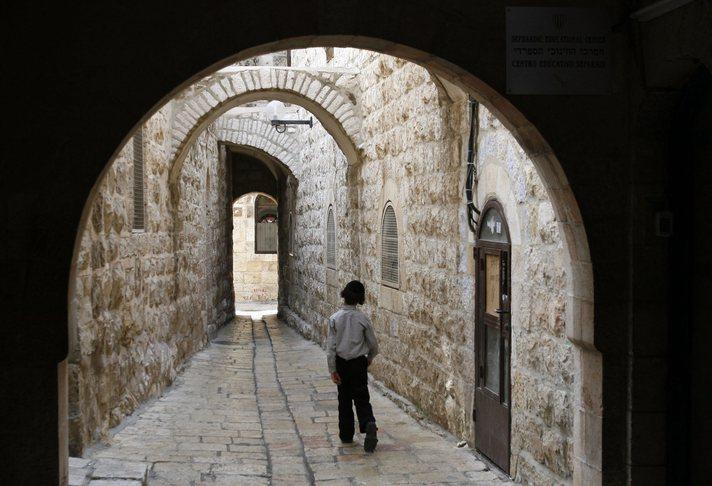 25 Eylül 2007 tarihinde Kudüs'ün Eski Şehrindeki Yahudi Mahallesinde çekilmiş bu fotoğrafta Ultra-Ortodoks bir Yahudi çocuk görülüyor...
