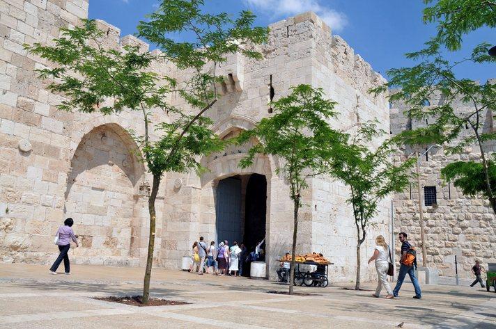 30 May 2011 tarihinde Kudüs'ün Yafa Kapısında eski şehir duvarları boyunca yürüyen turistler(!)...
