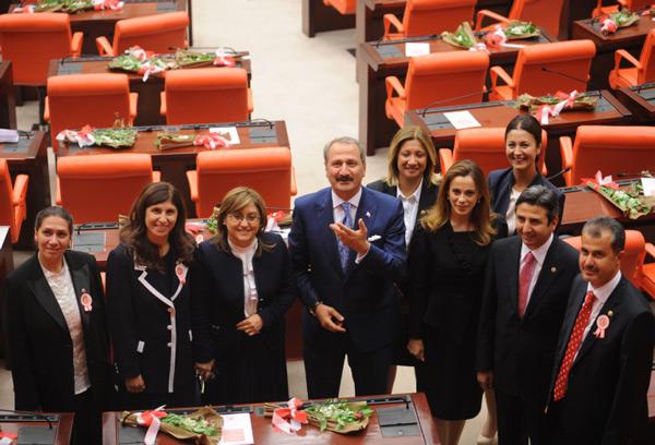 Yemin sırasını bekleyen AK Parti'li bazı milletvekilleri Devlet Bakanı Zafer Çağlayan ile hatıra fotoğrafı çektirmeyi ihmal etmediler...