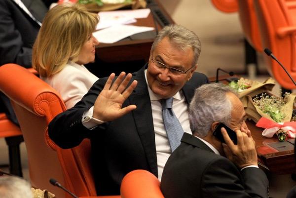 Meclis'te yemin etmemeye karar veren CHP'lilerin yüzü genelde asıktı. Ancak eski genel başkan Deniz Baykan etrafa gülücükler saçtı.