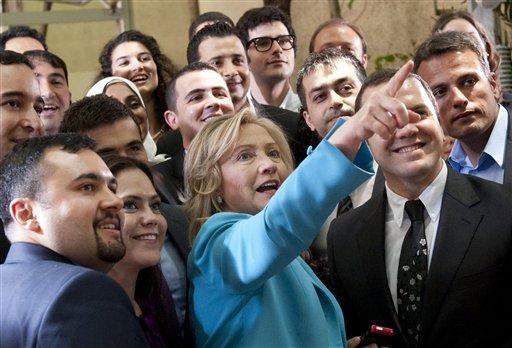 Clintonın bu hareketli gününde turkuvaz elbise seçmesi dikkat çekti.