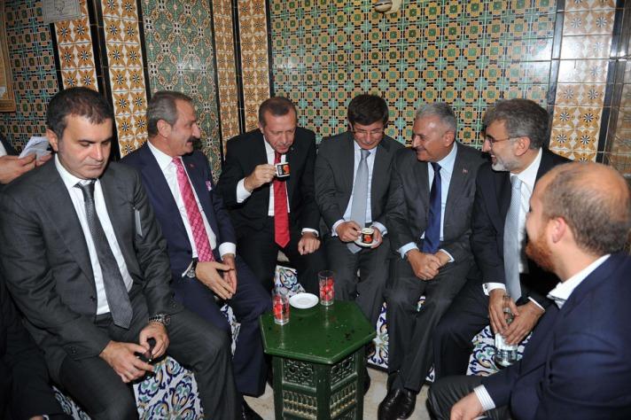 Başbakan Erdoğan, Türk kahvesi satan bir dükkanda bakanlarla sohbet etti ve Türk kahvesi içti.