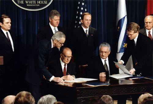 ABD´de, Bill Clinton´ın girişimiyle Hırvatistan ile barış antlaşması imzalarken...