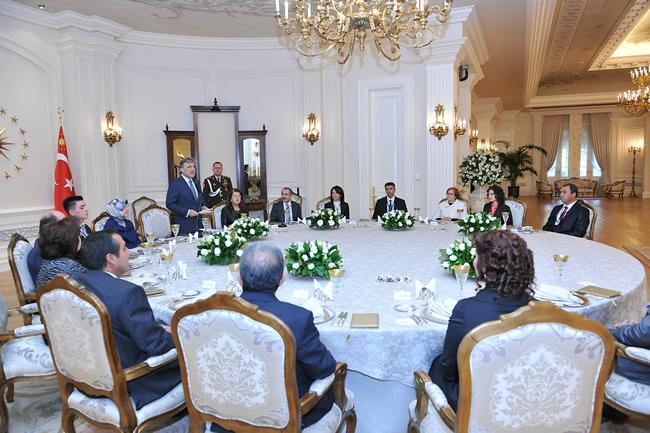 Cumhurbaşkanı Abdullah Gül, 81 ilden gelen öğretmenlerle öğle yemeğinde bir araya geldi. Gül, bugünkü Türkiye'nin dünkü öğretmenlerin yetiştirdiği nitelikli insanların eseri olduğunu belirtti.