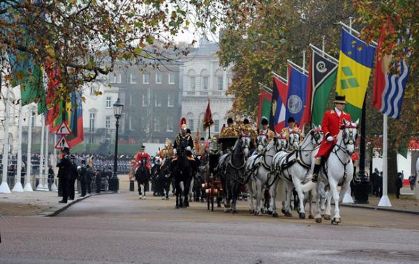 Gül çifti Kraliyet ailesiyle ve resmî yetkililerle tanıştırıldıktan sonra atlı arabalarla yola çıktı.