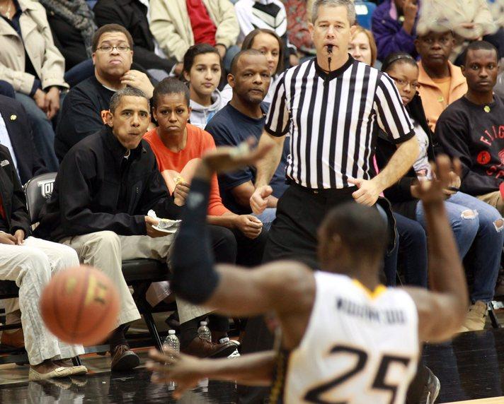 Obama çifti basketbol maçında